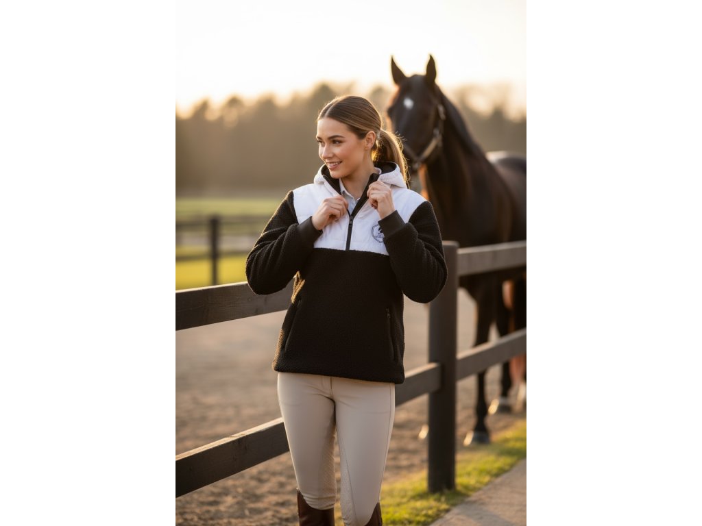 Jezdecká bunda TEQ Equestrian Arctic Ride spojuje měkký chlupatý fleece s elegantní bílou horní částí. Extrémně hřejivá, příjemná na dotek a ideální do chladného počasí. Testováno jezdci, vytvořeno s vášní.