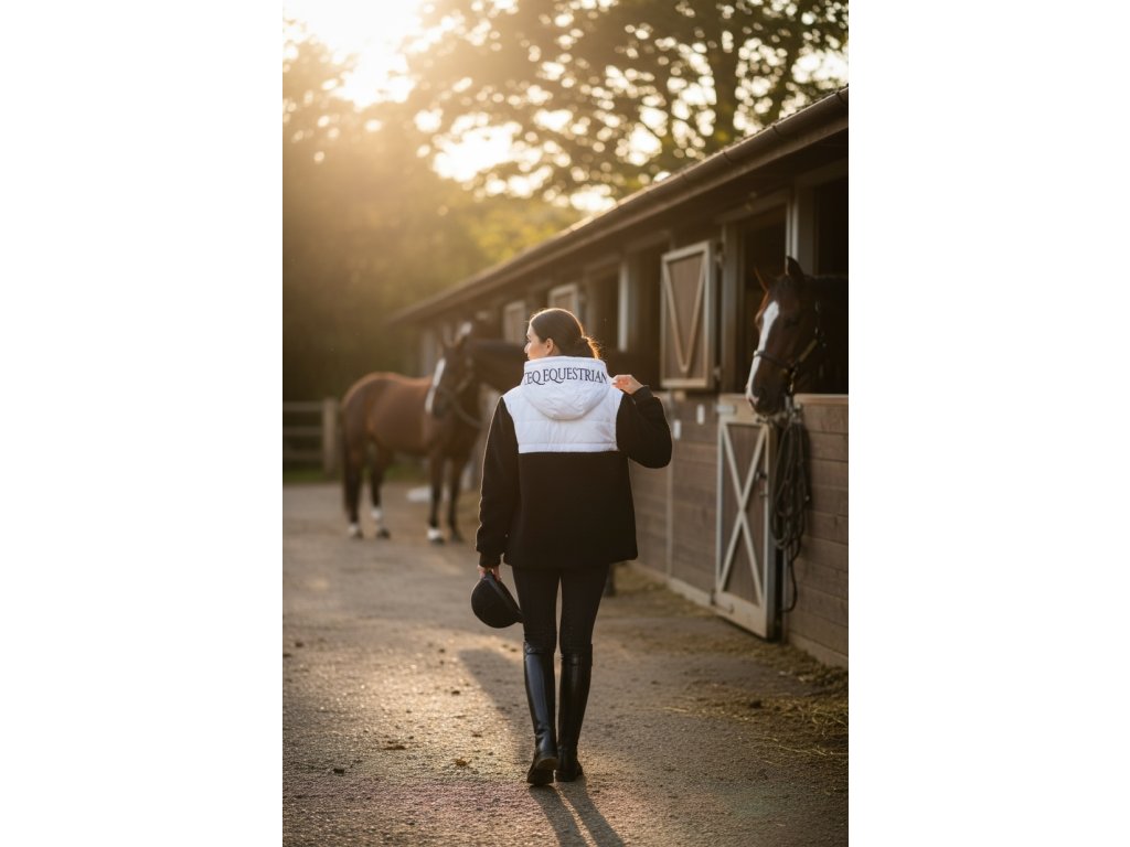 Díky propracovanému střihu, kapuci s nápisem TEQ Equestrian a decentnímu logu na hrudi působí luxusně i sportovně zároveň.