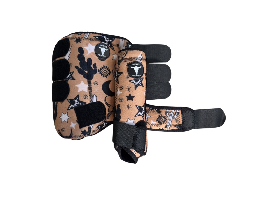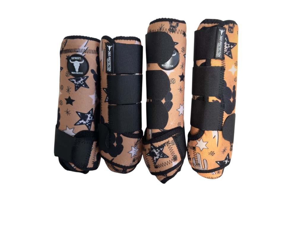 Westernové kloubové chrániče Hayward’s Coyote – sada 4 ks v hravém westernovém designu. Styl, kvalita a kompletní ochrana koně.