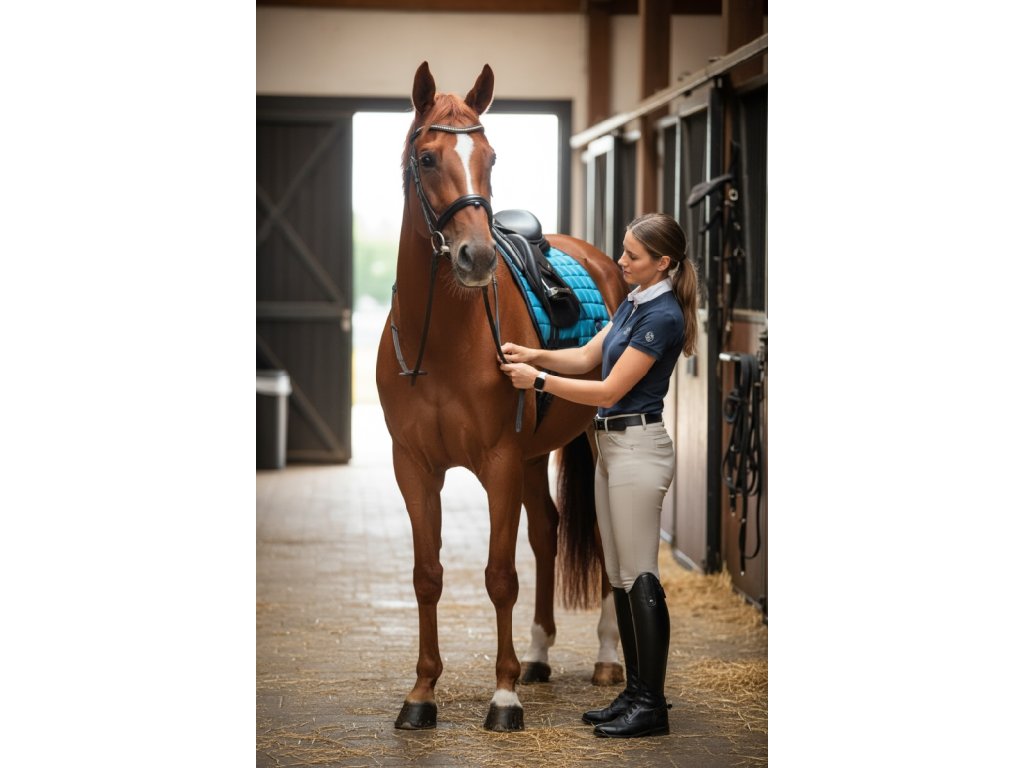 Podsedlová deka Emerald Green Shimmer je dokonalou kombinací stylu, praktičnosti a pohodlí, která vás a vašeho koně povýší na novou úroveň elegance!