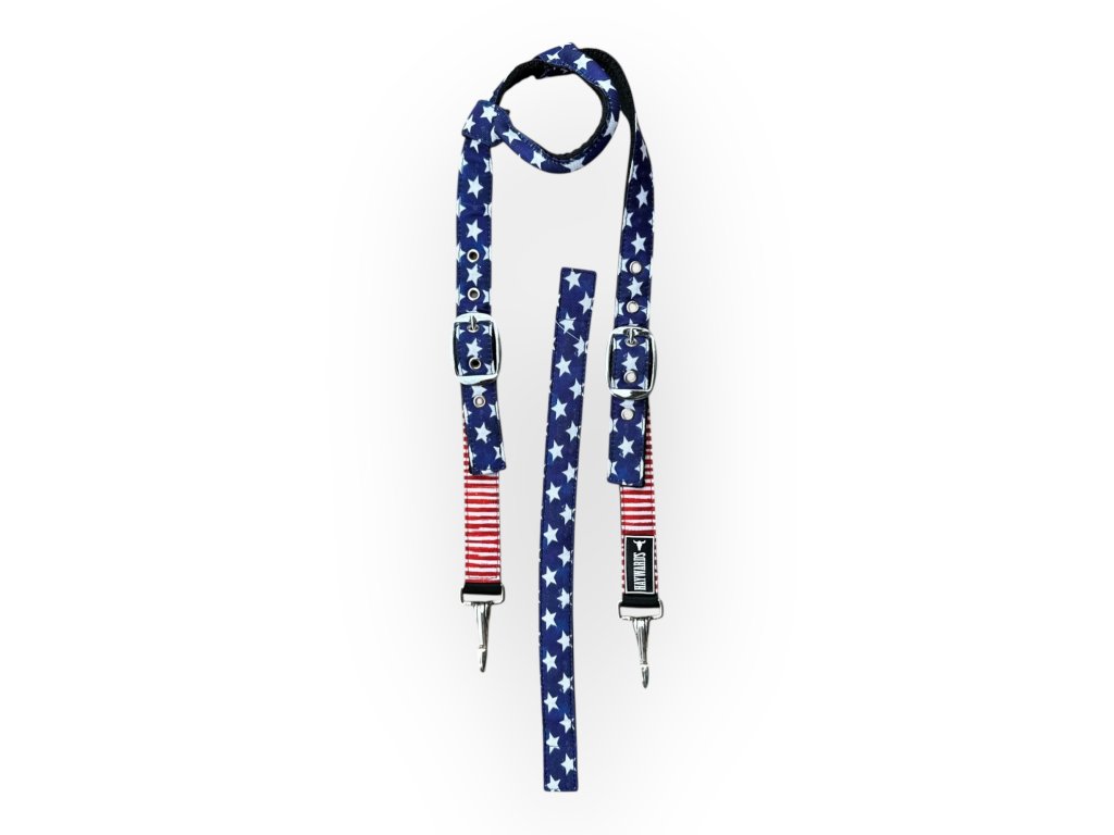 Vystupte z davu s naší originální westernovou uzdou z nylonu America, která kombinuje praktičnost a výrazný design hvězd a pruhů.