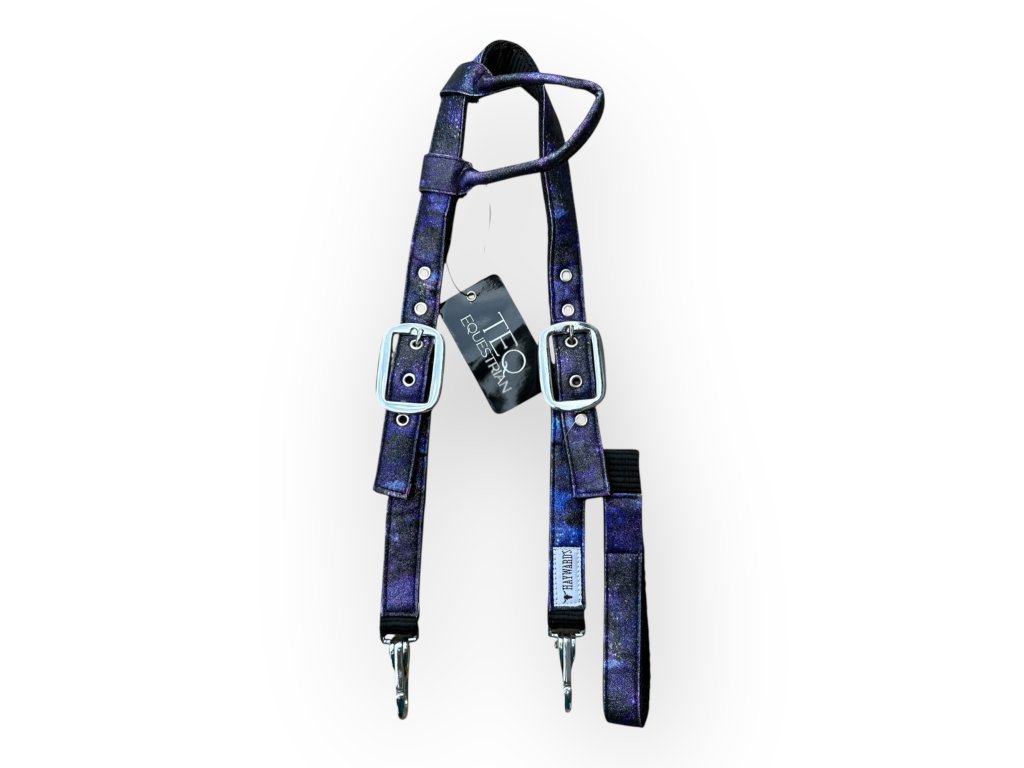 Unikátní westernová uzda z nylonu Galaxy Glitter s vesmírným vzorem a třpytivým efektem. Lehká, odolná a nastavitelná.