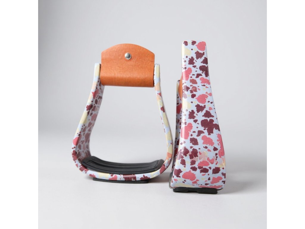 Originální westernové třmeny Haywards Wild & Free s výrazným cowhide designem. Lehké, pohodlné a perfektní pro jezdce, kteří milují barevné a odvážné sety.