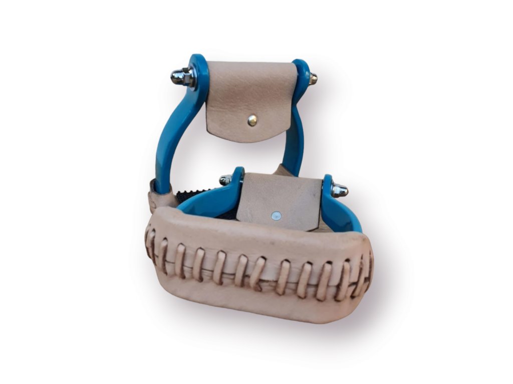 Lehké a odolné hliníkové westernové třmeny ve výrazné tyrkysové barvě. Pohodlné kožené polstrování a protiskluzová nášlapka pro jistotu a stabilitu v sedle.