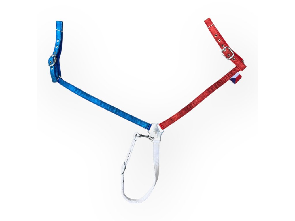 Podtrhněte svou jezdeckou osobnost s naším westernovým nylonovým poprsníkem Patriot, který spojuje pevnost nylonu s výrazným barevným designem. Červená, bílá a modrá barva symbolizují sílu, odvahu a styl – ideální pro jezdce, kteří chtějí vyniknout.